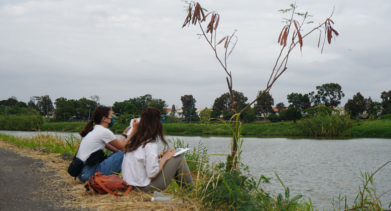 To prepare for the following workshop sessions, participants drew their favourite scenery and picked one object at the fishpond before transforming it into a daily item.